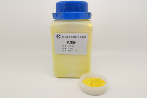 ? ? ? 釩酸在光照下能分解甲醛等有害物,又能反射紫外線,防涂料UV老化。耐熱達(dá)260℃,具備耐光性、耐酸堿性、耐溶劑性和對(duì)二氧化硫的耐受性,極大拓展了其在汽車(chē)涂料,粉末涂料,卷鋼涂料等功能性涂料、塑膠塑料制品中的應(yīng)用。